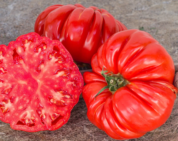 La tomate Marmande est la référence française traditionnelle avec sa forme côtelée et aplatie. Sa chair est très charnue avec peu de graines, ce qui en fait la candidate idéale pour préparer de délicieuses tomates farcies.