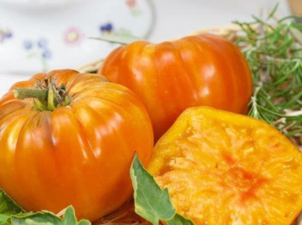 La tomate Striped German est spectaculaire avec sa grosse taille et sa chair marbrée de jaune et de rouge. C’est une tomate “steak” dense, très fruitée et sucrée, qui se déguste coupée en tranches épaisses façon carpaccio.