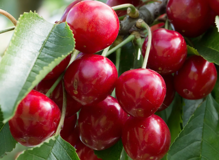 Le cerisier Van est réputé pour sa très grande fertilité et sa capacité à polliniser d’autres variétés. Il offre une cerise bio ronde, pourpre, à la chair croquante et intensément sucrée.